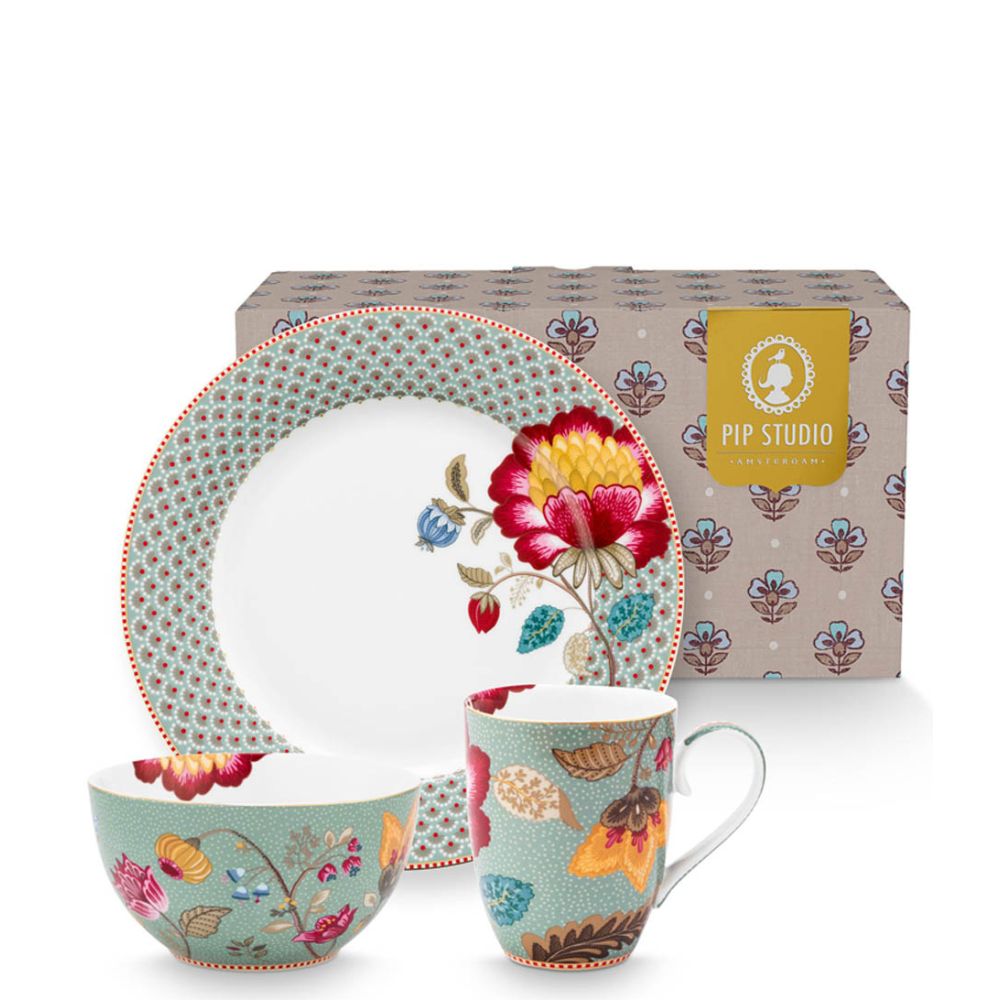 Pip Studio Set of 3 Breakfast Set Blooming Tales Fantasy Blue