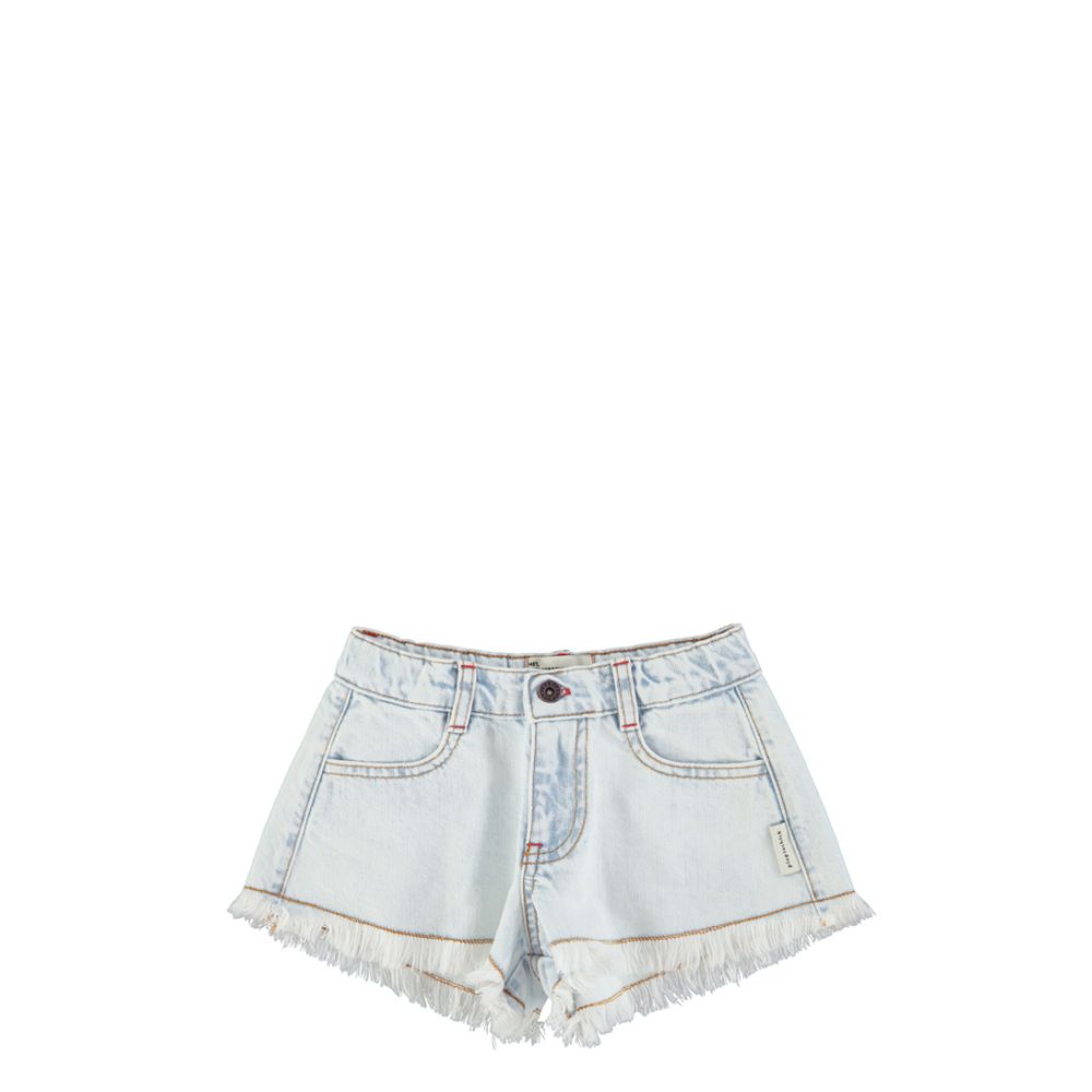 Piupiuchick Shorts With Fringes Washed Light Blue Denim