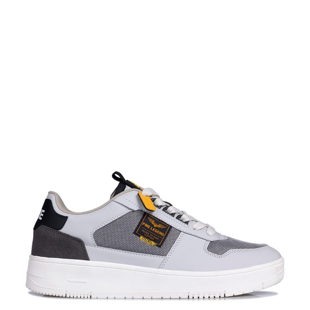 Gobbler is een paar stoere Lage Sneakers voor heren van het merk PME Legend. Deze sneakers zijn gemaakt van een combinatie van nylon, suède en kunstleer, waardoor ze een trendy en duurzame uitstraling hebben. De binnenkant van de schoenen is bekleed met comfortabel textiel, terwijl de binnenzool is gemaakt van foam voor extra demping en ondersteuning. De rubberen zool zorgt voor een goede grip en stabiliteit, waardoor je met vertrouwen kunt lopen. Met de vetersluiting kun je de sneakers gemakkelijk aanpassen aan jouw gewenste pasvorm. De ronde neus geeft de schoenen een klassieke en tijdloze uitstraling. Deze sneakers zijn perfect voor het komende lente/zomerseizoen en zullen zeker een favoriet worden in jouw schoenencollectie.
