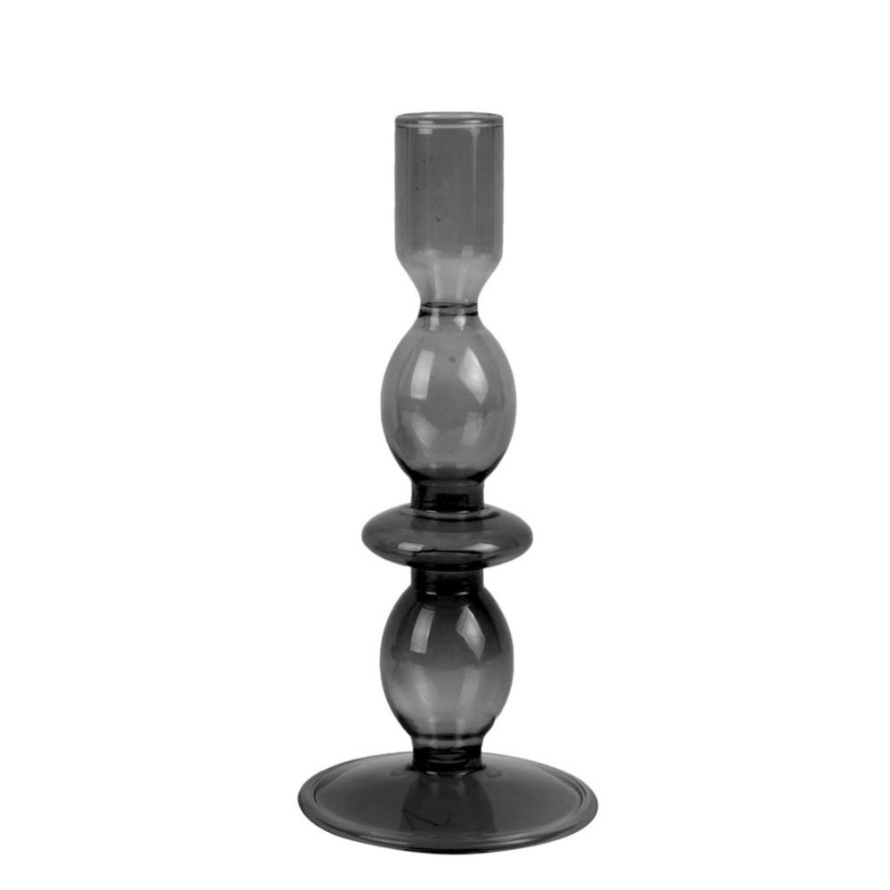 Present Time Candle holder Glass Art bubbles Medium Black