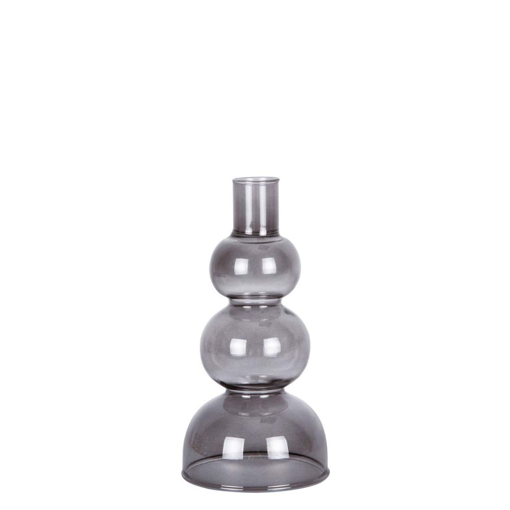 Present Time Candle holder Layered Circles glass Black