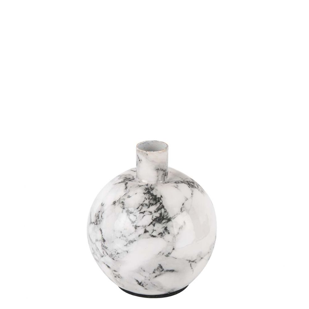 Present Time Candle holder Marble Look iron small White