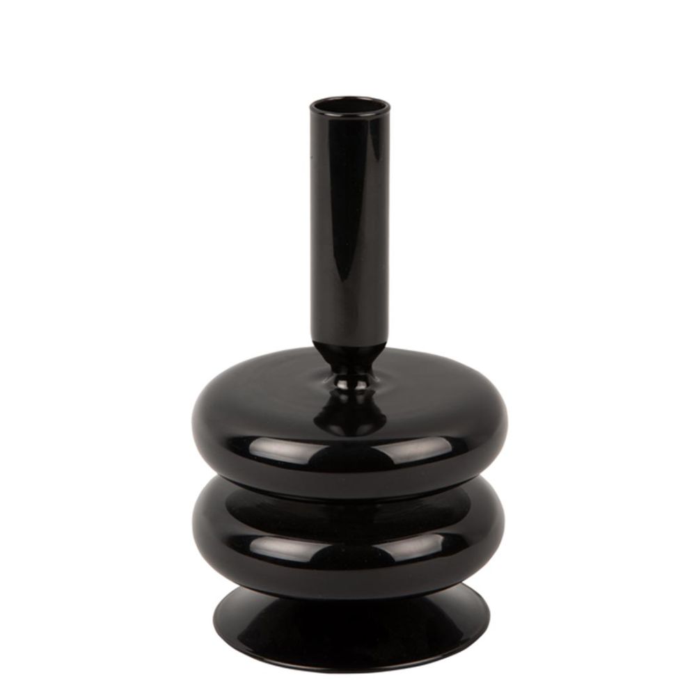 Present Time Candle Holder Sparkle Double Ring Glass Black
