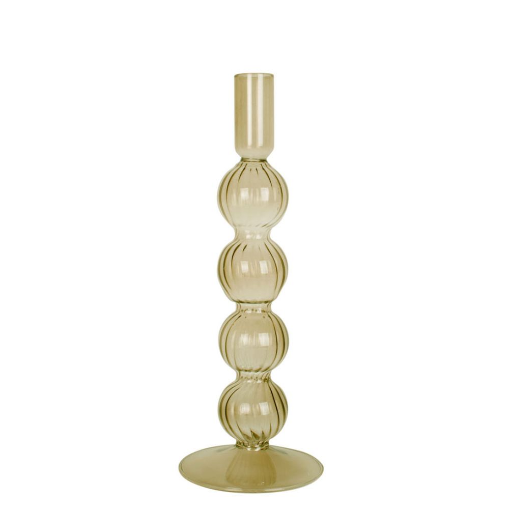 Present Time Candle holder Swirl Bubbles glass large Moss Green