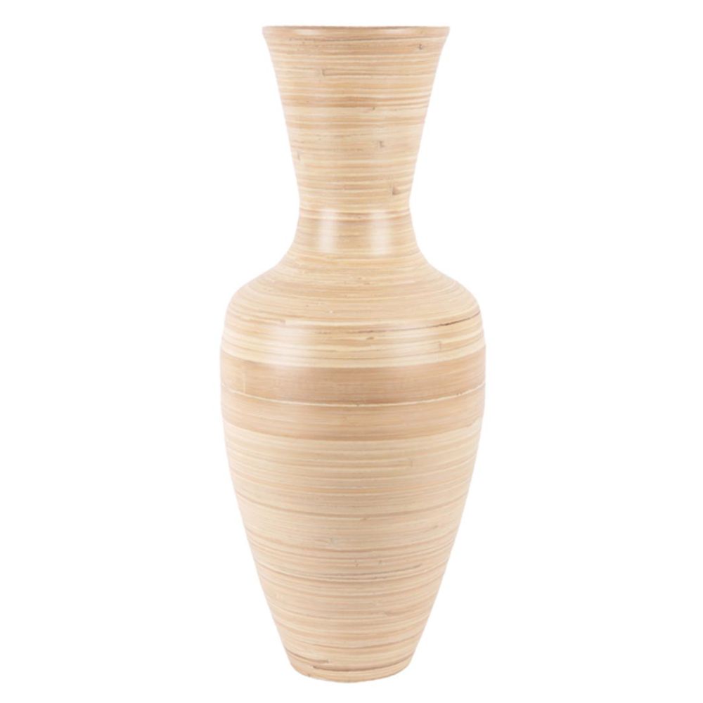 is niet alleen een eyecatcher, maar ook een statement piece dat je interieur naar een hoger niveau tilt. Met een hoogte van 62 cm en een breedte en diepte van 27 cm, is deze vaas perfect voor het tonen van je favoriete bloemen of gewoon als decoratief element op zichzelf.Gemaakt van hoogwaardig bamboe, straalt deze vaas een warme, natuurlijke uitstraling uit die moeiteloos past in elke moderne of bohemian inrichting. Het ruime volume van 38 liter biedt voldoende ruimte voor een weelderige boeket of een enkele, opvallende tak. Deze vaas is speciaal ontworpen voor volwassenen die houden van stijl en functionaliteit in hun woonruimte.