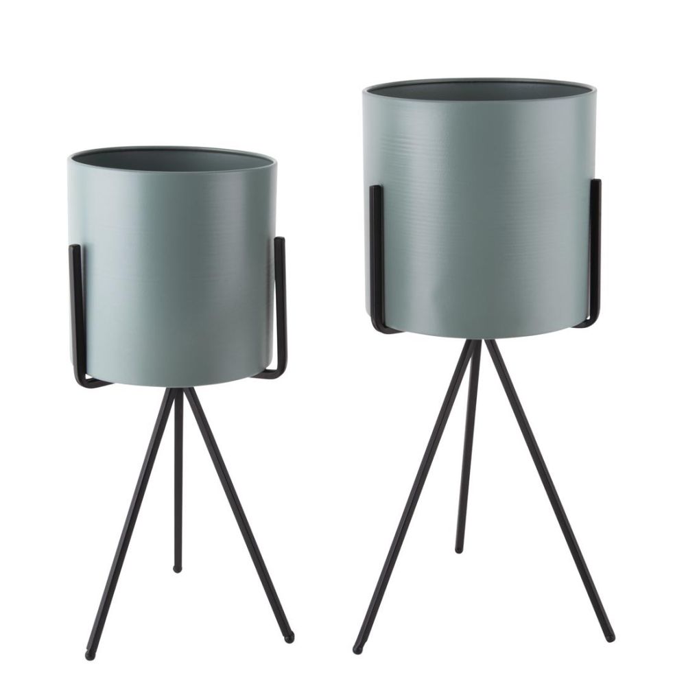 Present Time Plant Pot Set Pedestal XL Iron Matt Jungle Green