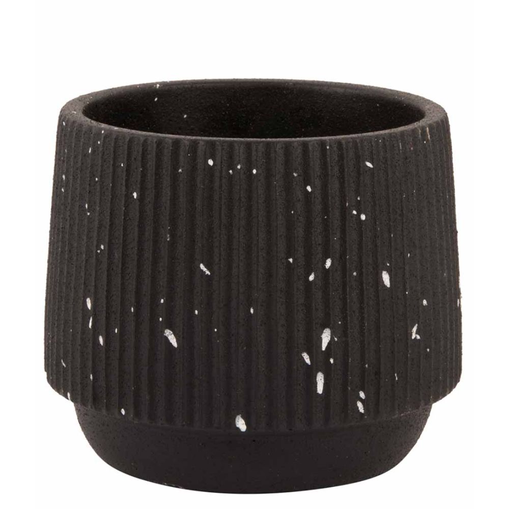 Present Time Plant Pot Speckles Cone Ceremic Black