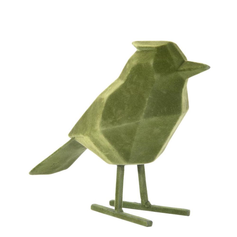 Present Time Statue bird large polyresin flocked Flocked Dark Green