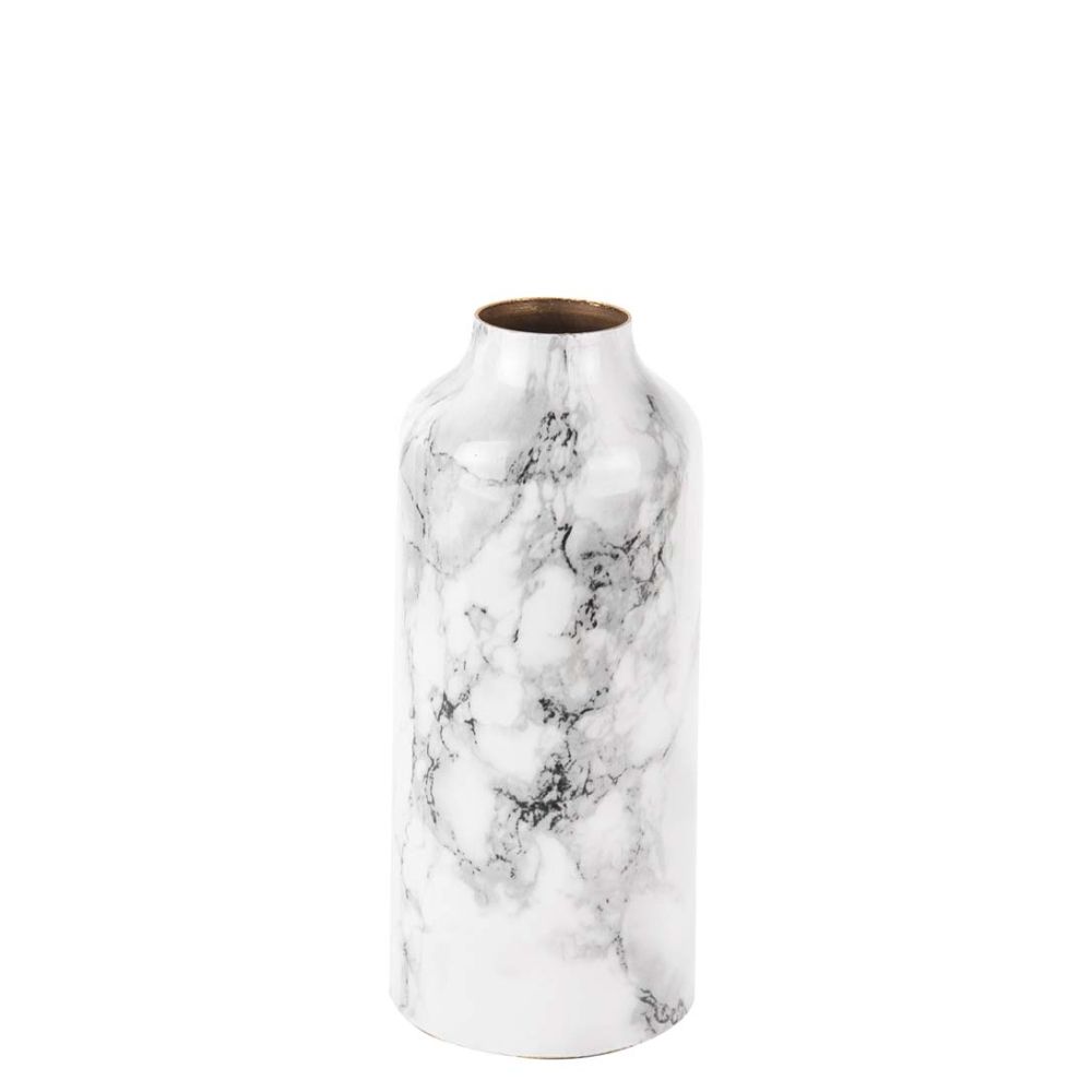 Present Time Vase Marble Look straight iron medium White