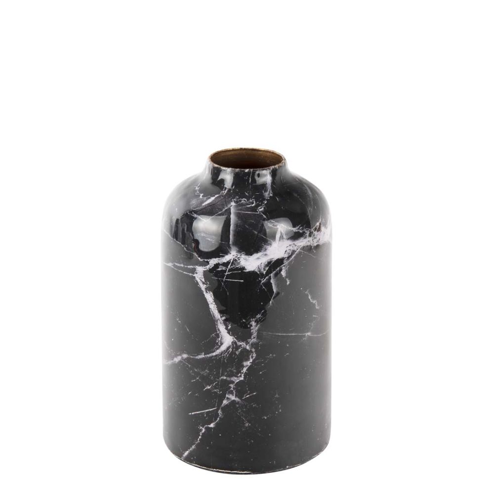 Present Time Vase Marble Look straight iron small Black