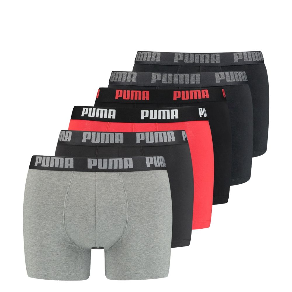PUMA Basic Boxer 6P 6-Pack Grey Black Red Combo