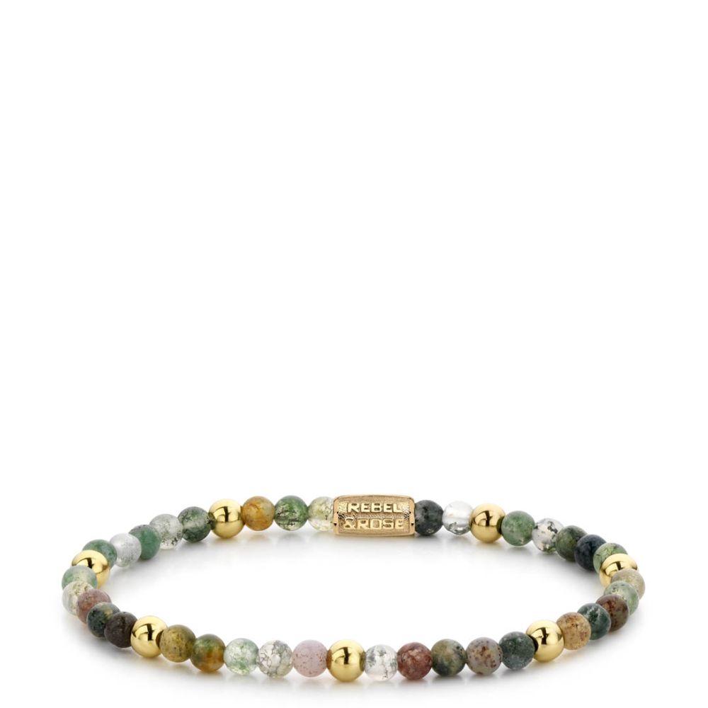 Rebel and Rose Indian Summer - 4mm - yellow gold plated Groen met beige/pastel kleuren