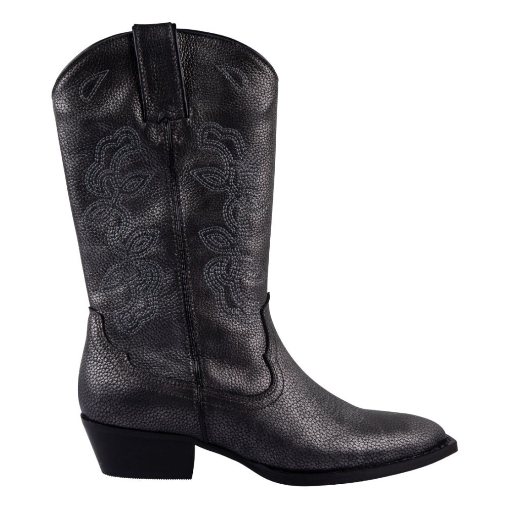 Met een handige ritssluiting zijn deze laarzen niet alleen stijlvol, maar ook praktisch. Trek ze gemakkelijk aan en uit, zodat je meer tijd hebt om te stralen. De anthracite metallic kleur voegt een unieke touch toe aan je outfit en maakt deze laarzen een must-have voor elke modebewuste vrouw. Stap in de wereld van stijl en comfort met de Western Mid cowboylaarzen!