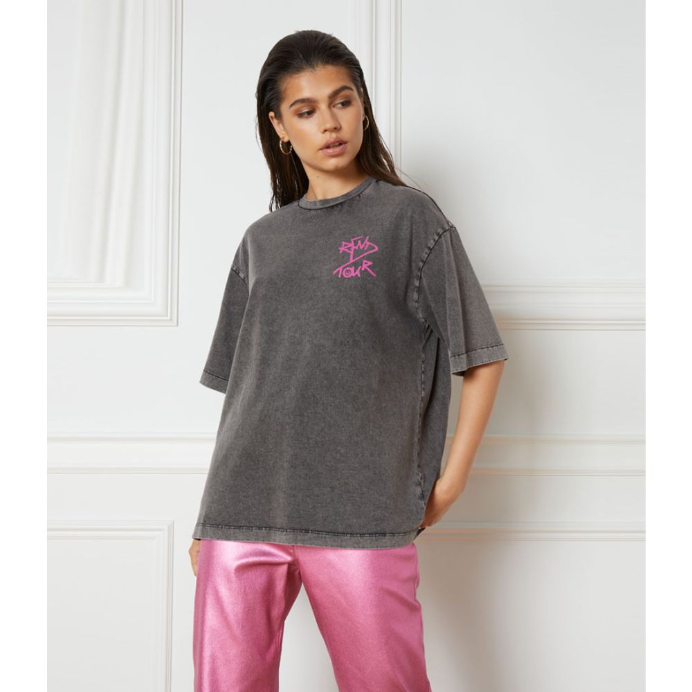De Knitted Oversized Acid T-Shirt Maggy heeft een unieke antraciet kleur, die moeiteloos kan worden gecombineerd met verschillende outfits. Met de korte mouwen en het effen patroon is deze T-shirt zowel veelzijdig als trendy.