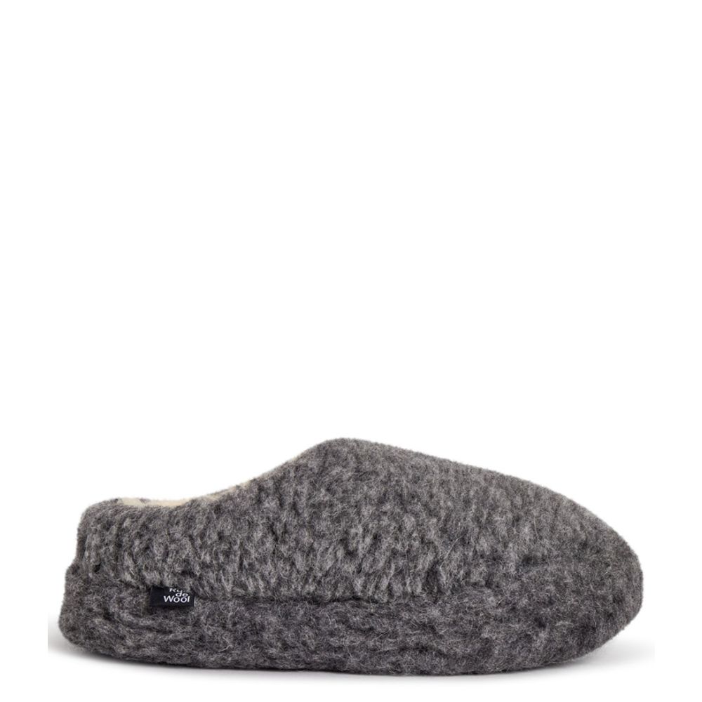 s voor de moderne man die comfort en stijl waardeert. Deze pantoffels zijn gemaakt van 100% wol, wat betekent dat je voeten heerlijk warm blijven, zelfs op de koudste dagen. Of je nu thuis aan het relaxen bent of een snelle boodschap doet, deze pantoffels zijn de ideale metgezel.De binnenkant en de binnenzool zijn ook van wol, wat zorgt voor een luxe gevoel bij elke stap. De ronde neus geeft een casual uitstraling, terwijl het ontwerp zonder sluiting het aan- en uittrekken super eenvoudig maakt. Met een kleur die doet denken aan de serene tinten van de Scandinavische natuur, zijn deze pantoffels niet alleen functioneel, maar ook een stijlvolle aanvulling op je herfst- en wintergarderobe.
