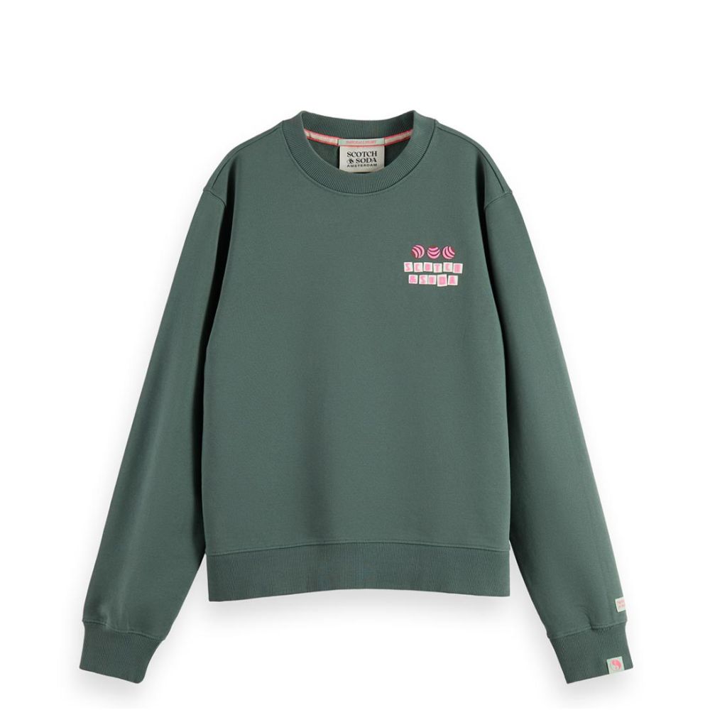 Scotch and Soda Cotton In Conversion Enzyme Wash Regular Fit Sweatshirt Seaweed