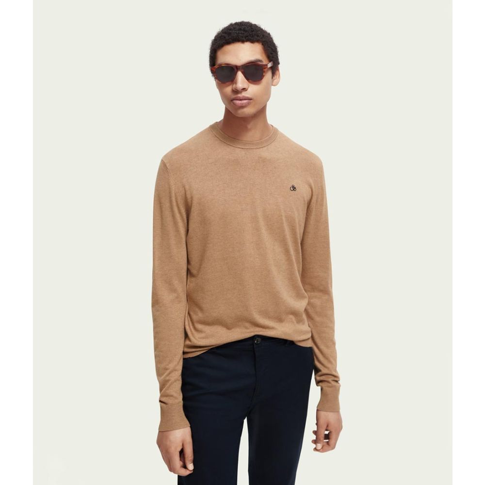 Scotch and Soda Essentials Classic crewneck pullover Camel Melange