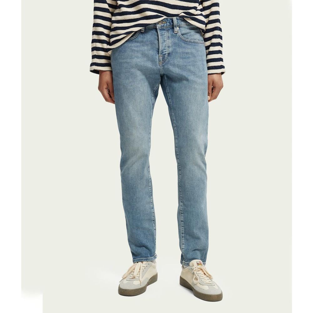 De Essentials Ralston in organisch katoen is een must-have voor heren die op zoek zijn naar stijlvolle en duurzame jeans. Deze jeans van Scotch and Soda is gemaakt van organisch katoen, wat betekent dat het materiaal op een milieuvriendelijke manier is geproduceerd. Met zijn aqua blauwe kleur en slim-fit pasvorm is deze jeans perfect voor elke gelegenheid.