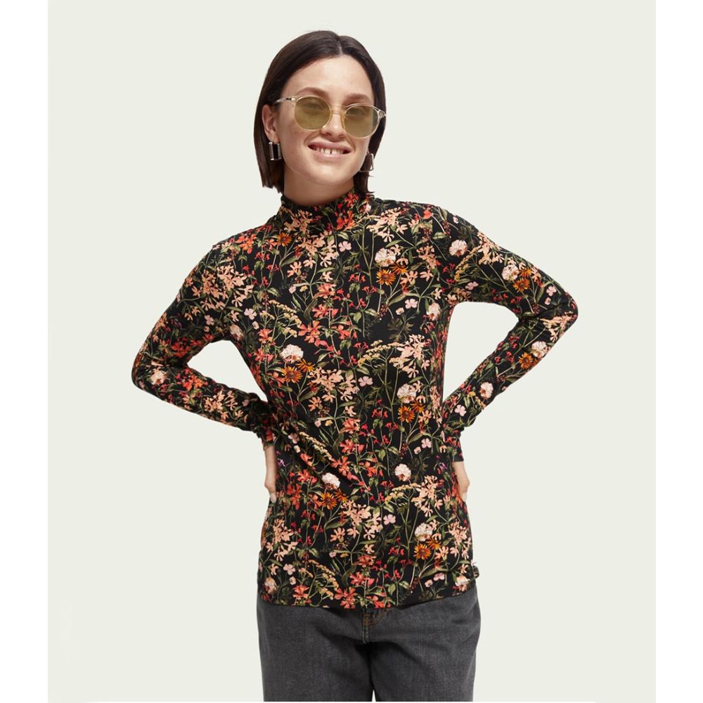Scotch and Soda Mock Neck Allover Printed Slim-Fit Top Meadow Deep Raspberry