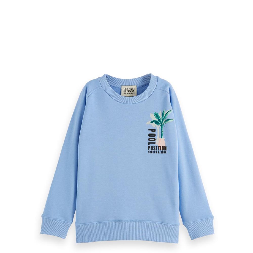 Scotch and Soda Relaxed Fit Crewneck Artwork Sweatshirt Cornflower