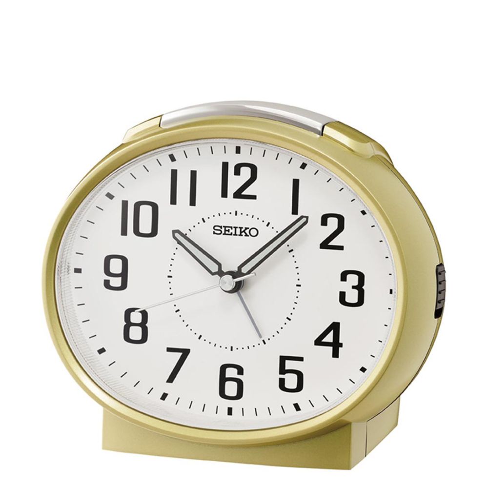 Maak kennis met de QHK059G Seiko, de perfecte aanvulling voor jouw slaapkamer. Met een breedte van 13 cm, een diepte van 8.1 cm en een hoogte van 11.2 cm, past deze wekker moeiteloos op elk nachtkastje. Het strakke design in goudkleur geeft een luxe uitstraling die elke ruimte opfleurt.