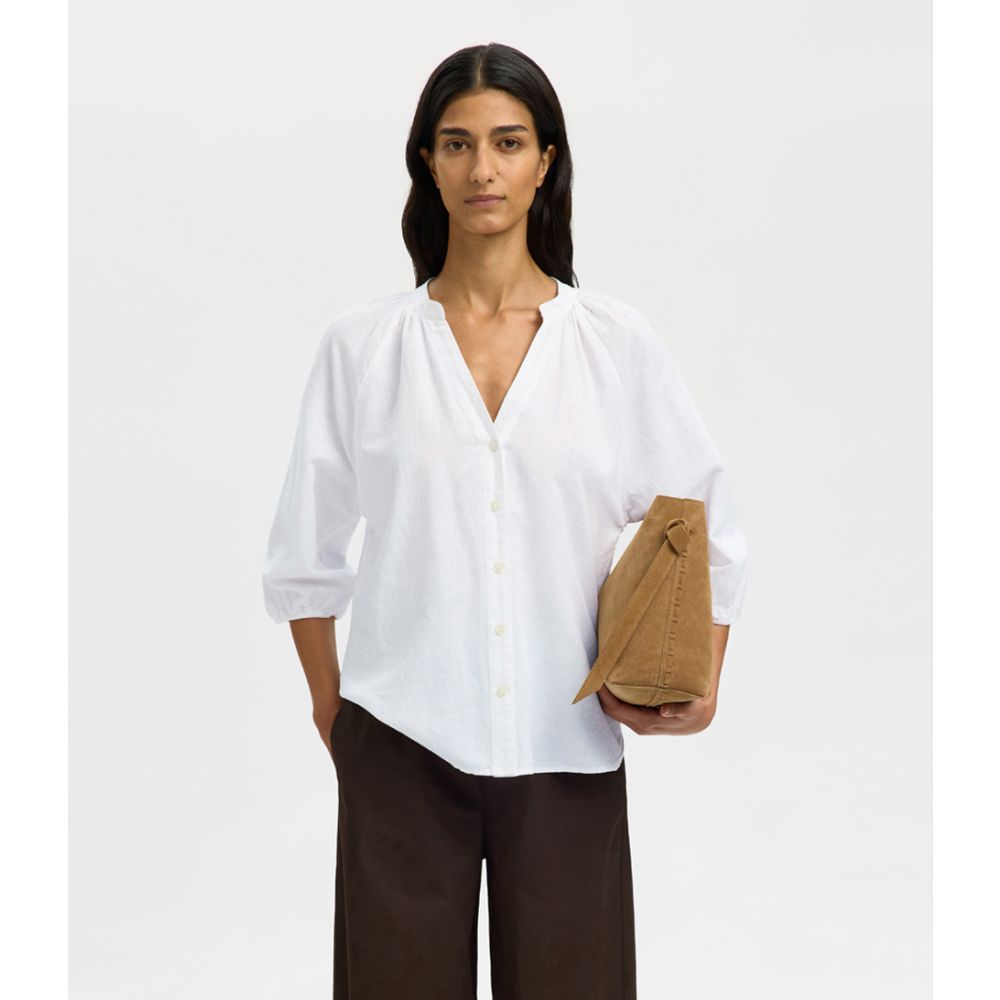 SELECTED FEMME Cleo-Alberta Linen Blend Shirt Bright White