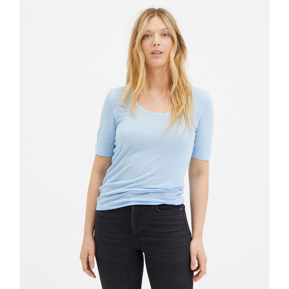 SELECTED FEMME Linda Shortsleeve U-Neck Linen Tee Blue Bell