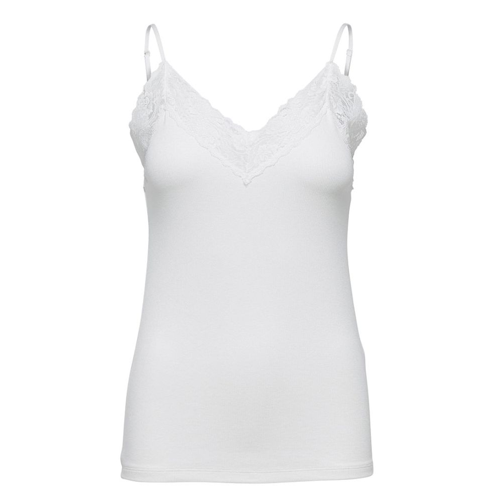 SELECTED FEMME Mandy Rib Lace Singlet Snow White