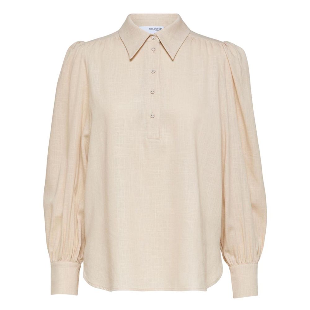 SELECTED FEMME Slfviva Long Sleeve Linen Top Sandshell