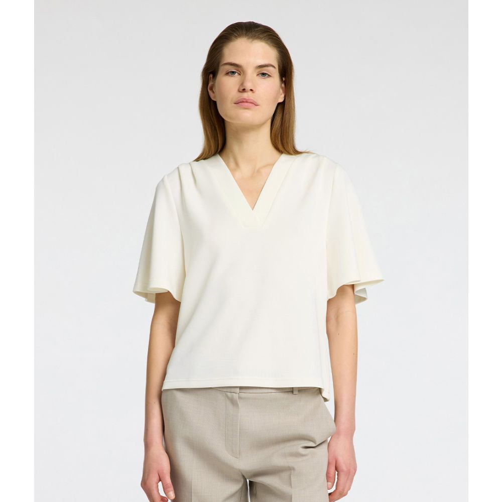SELECTED FEMME Tenny Short Sleeve V-Neck Top Snow White