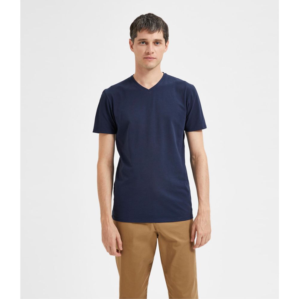 SELECTED HOMME Ael Sorona Short Sleeve V-Neck Tee Navy Blazer