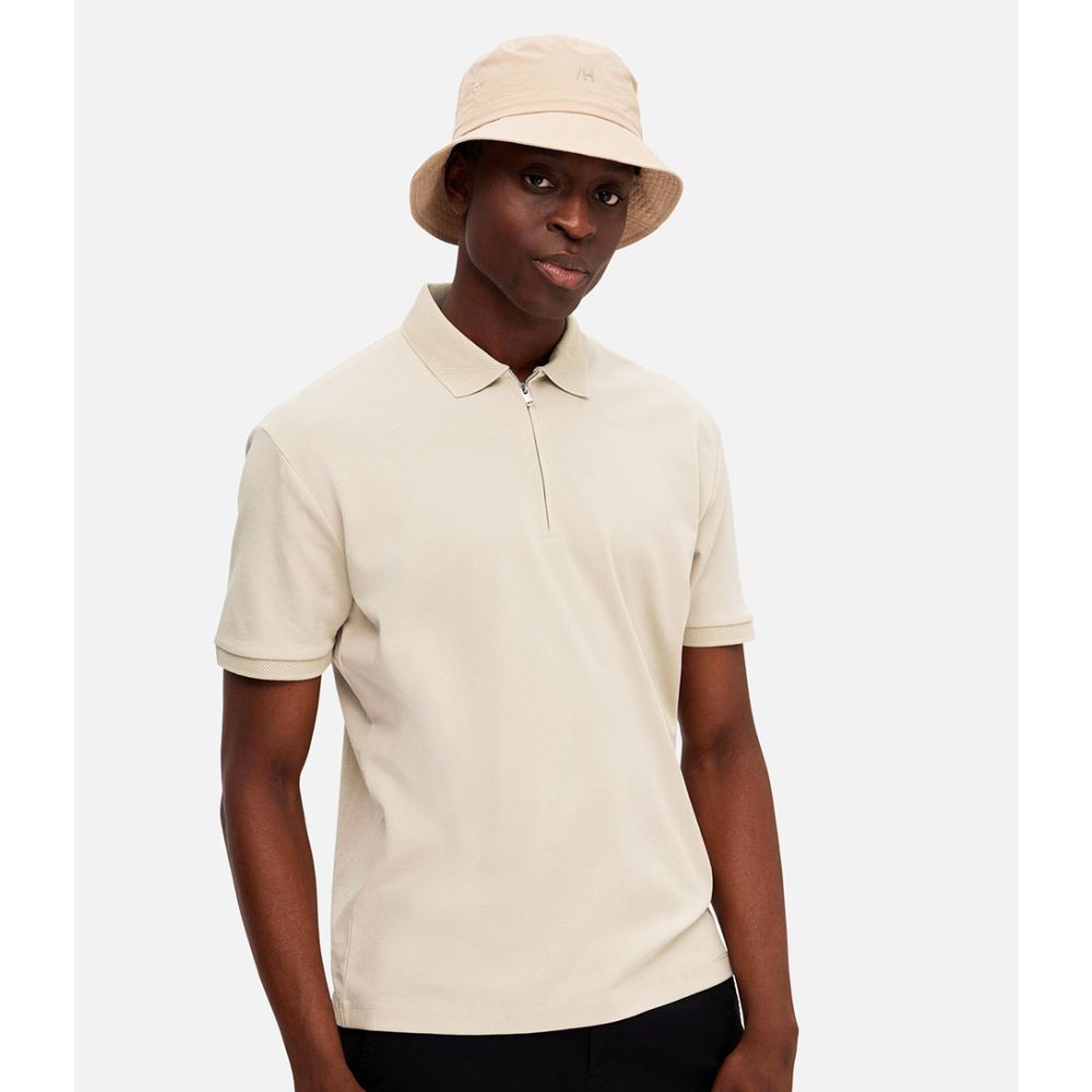 SELECTED HOMME Florence Short Sleeve Knit Zip Polo Ex Oatmeal