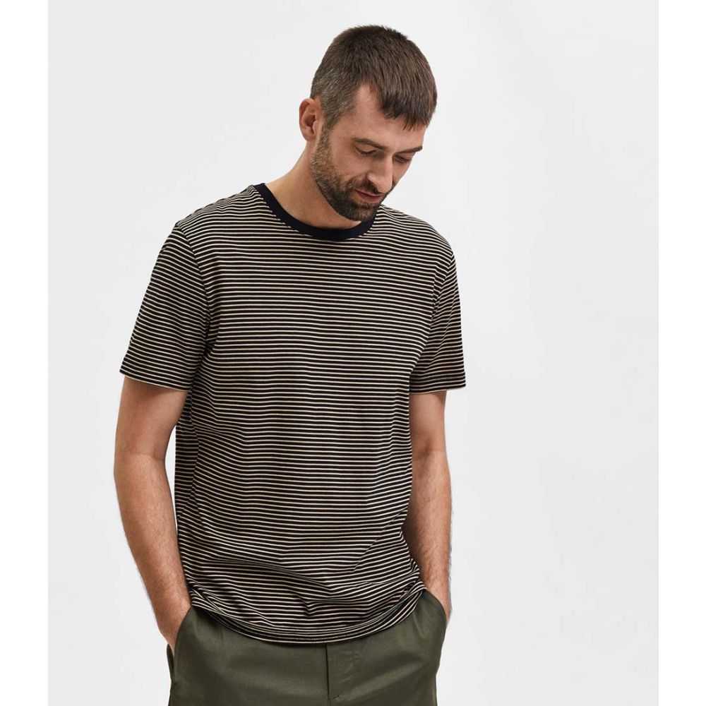 SELECTED HOMME Norman Stripe Short Sleeve O Neck Tee Black