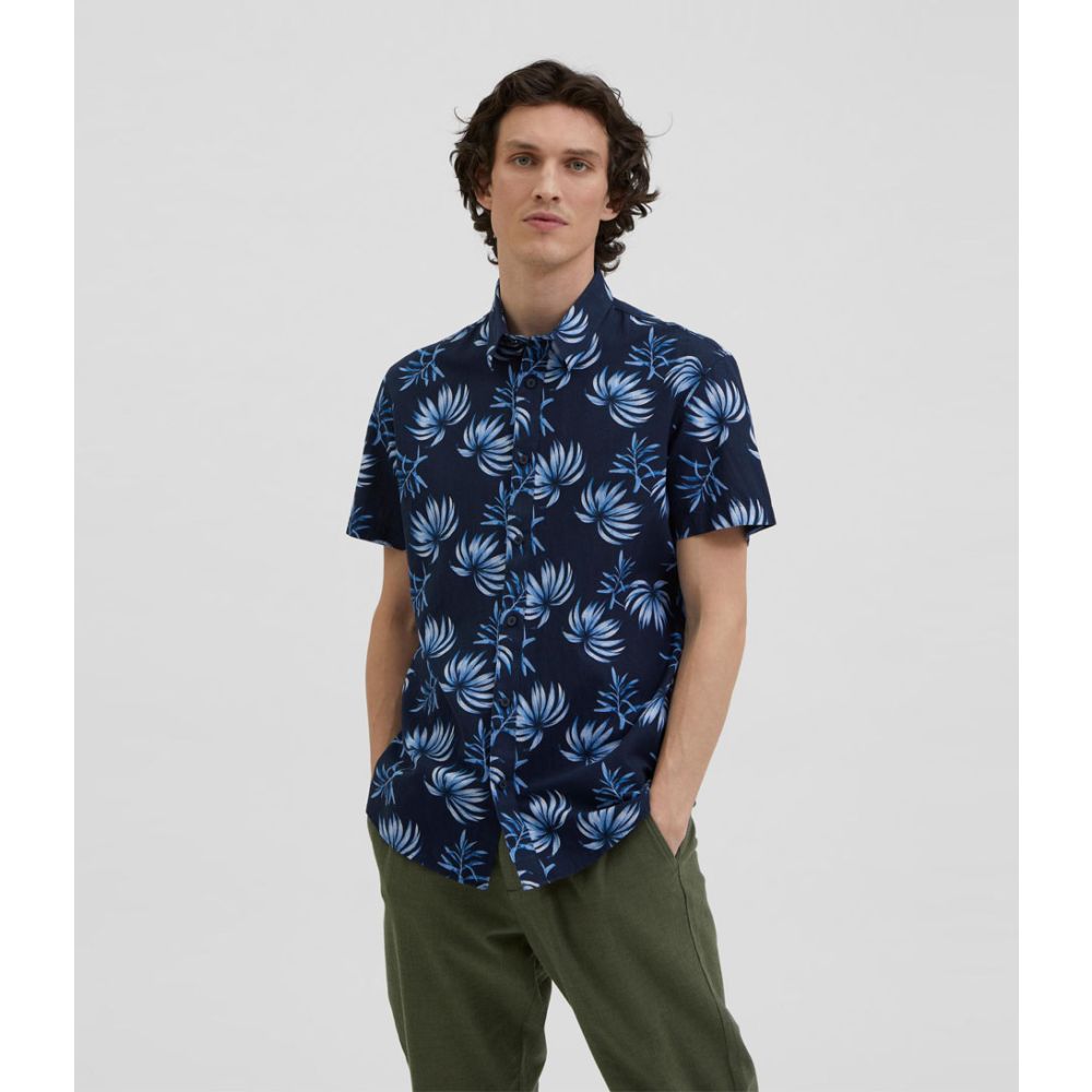 SELECTED HOMME Reg New Linen Short Sleeve Classic Sky Captain Leaf