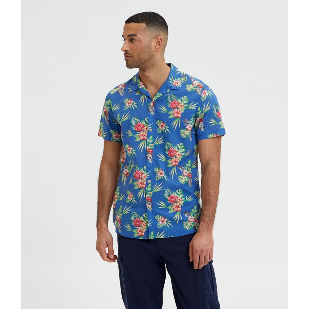 SELECTED HOMME Slim Crazy Shirt Short Sleeve AOP Camp Bright Cobalt