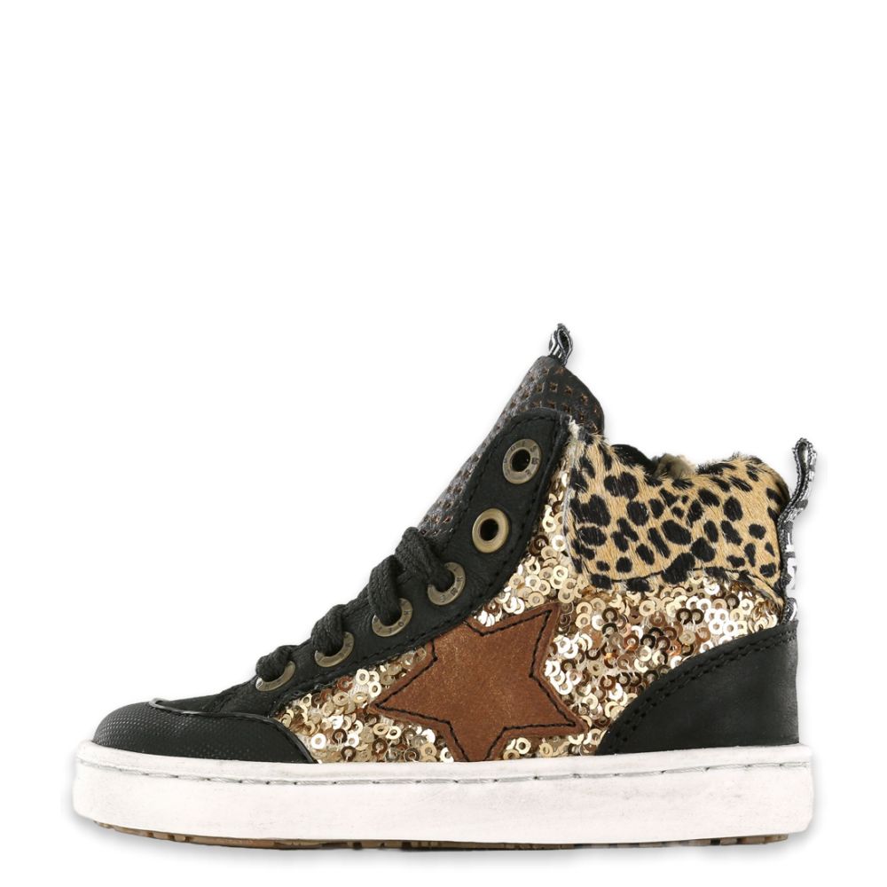 Deze sneakers zijn ontworpen door het bekende merk Shoesme en hebben de kleurnaam "Black Gold". De combinatie van zwart en goud geeft de sneakers een trendy en opvallende uitstraling. De ronde neus zorgt voor een speelse touch en maakt de sneakers helemaal af.