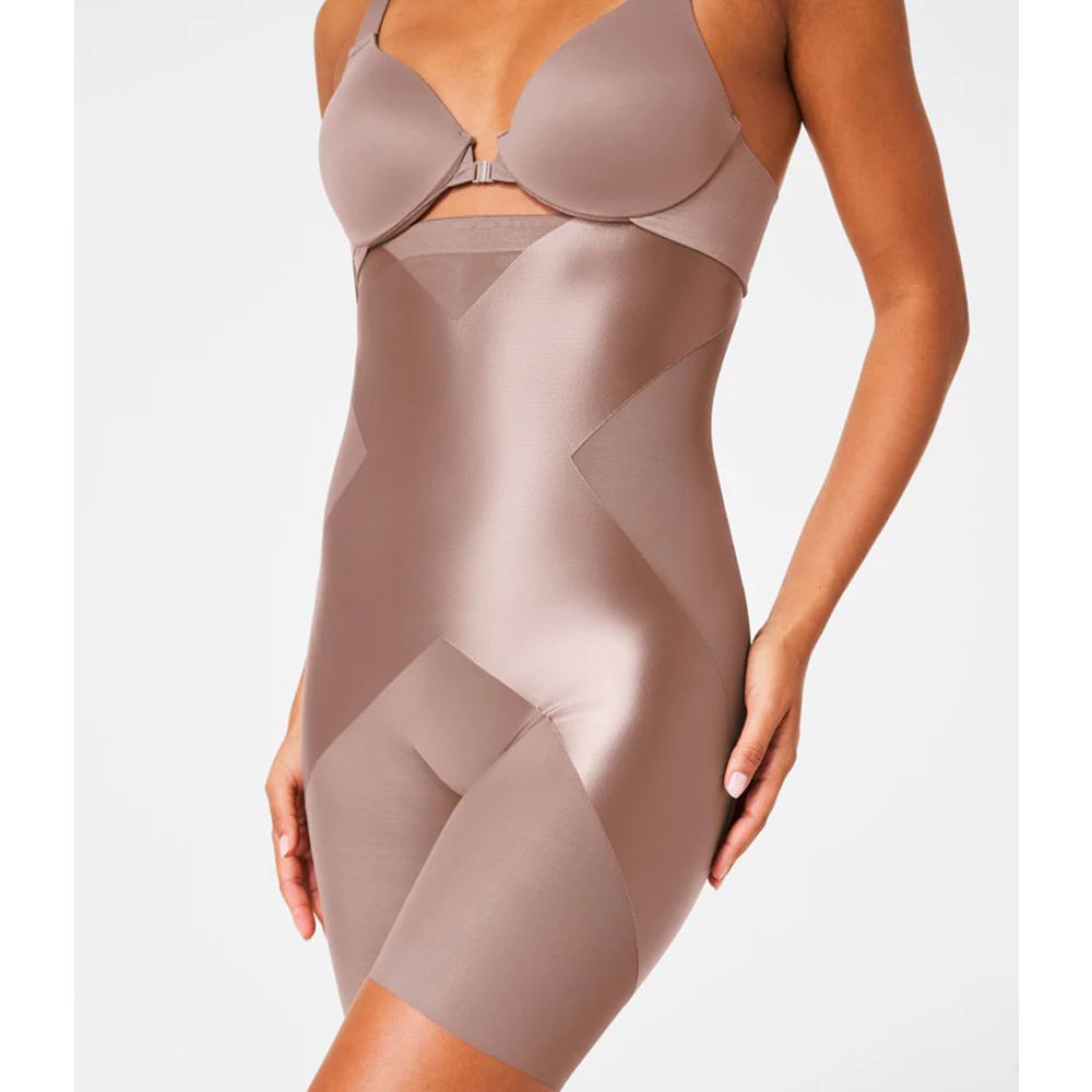 SPANX Satin-X High-Waisted Mid-Thigh Short Cafe au Lait