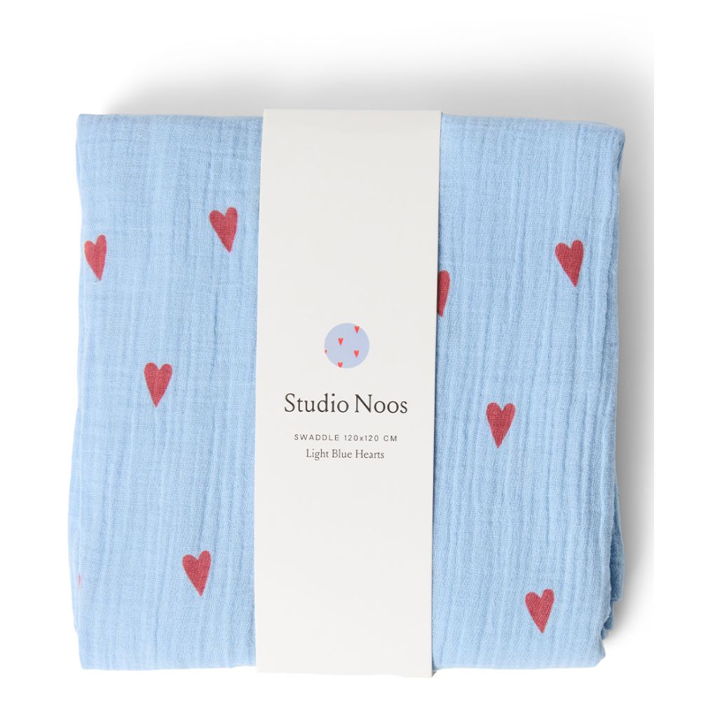 Studio Noos Organic Cotton Swaddle Large 120 x 120 cm Light Blue Hearts