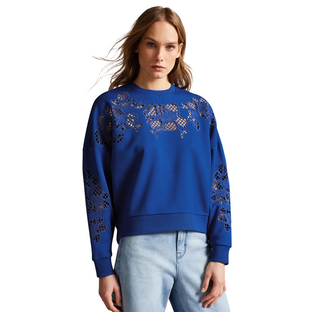 Ted Baker Fllo Laser Cut Sweat Dark Blue