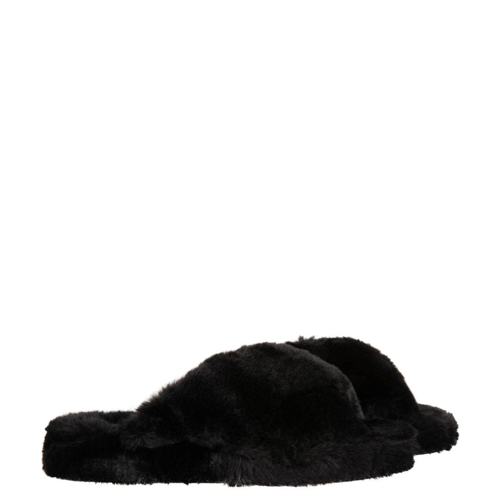 Ted Baker Lopply Faux Fur Cross Over Slipper Black