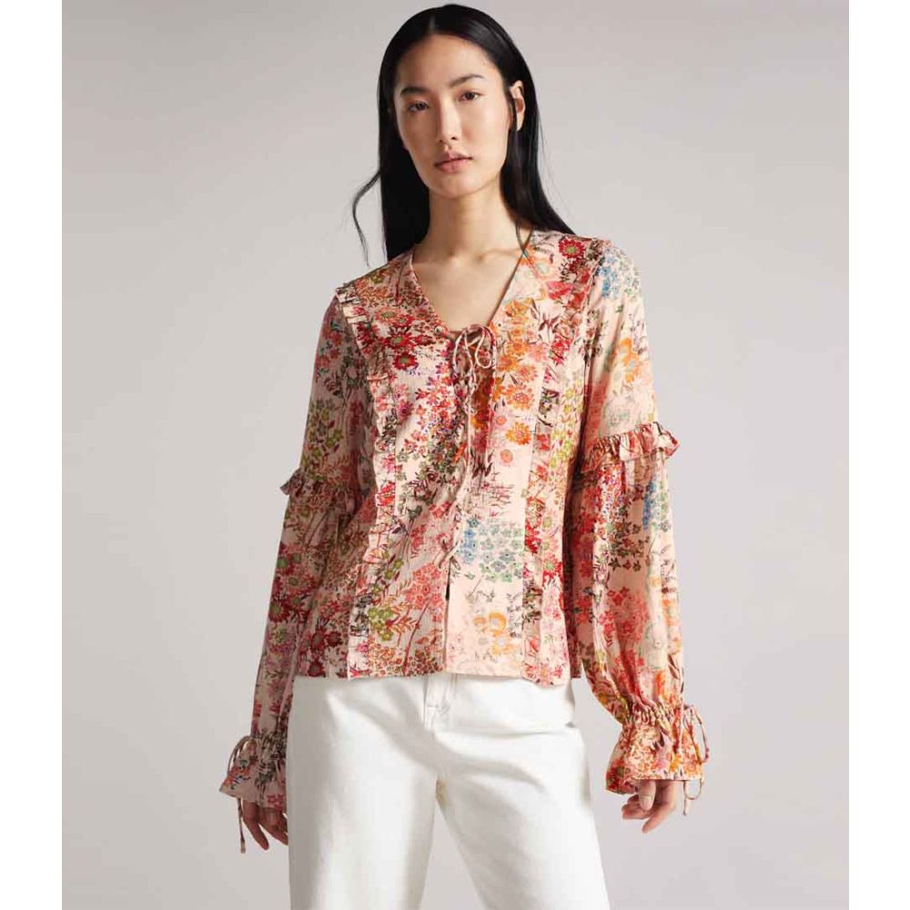 De Marrlaa Ruffle Blouse met Lace Up Detailing is een prachtige toevoeging aan de collectie Overhemden & Blouses voor dames. Deze blouse is gemaakt van hoogwaardig viscose materiaal, wat zorgt voor een comfortabele en luxe uitstraling. Het merk achter deze blouse is Ted Baker, een bekend en geliefd merk in de modewereld. De blouse heeft een mooie kleur genaamd Pale Orange, die perfect past bij het bloemige patroon. Met lange mouwen en een regular pasvorm is deze blouse geschikt voor elke gelegenheid. De knoopsluiting voegt een speels detail toe aan het ontwerp. Voor het behoud van de blouse wordt aanbevolen om deze op 30 graden te wassen.