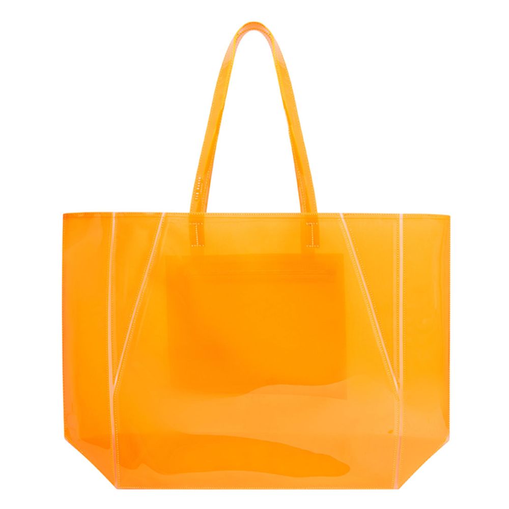 Gemaakt van hoogwaardig polyvinylchloride, is deze shopper zowel duurzaam als trendy. De opvallende oranje kleur geeft je outfit een frisse boost en zorgt ervoor dat je altijd in het oog springt. En met een handig binnenvak met ritssluiting kun je je waardevolle spullen veilig opbergen, zodat je je geen zorgen hoeft te maken terwijl je onderweg bent.