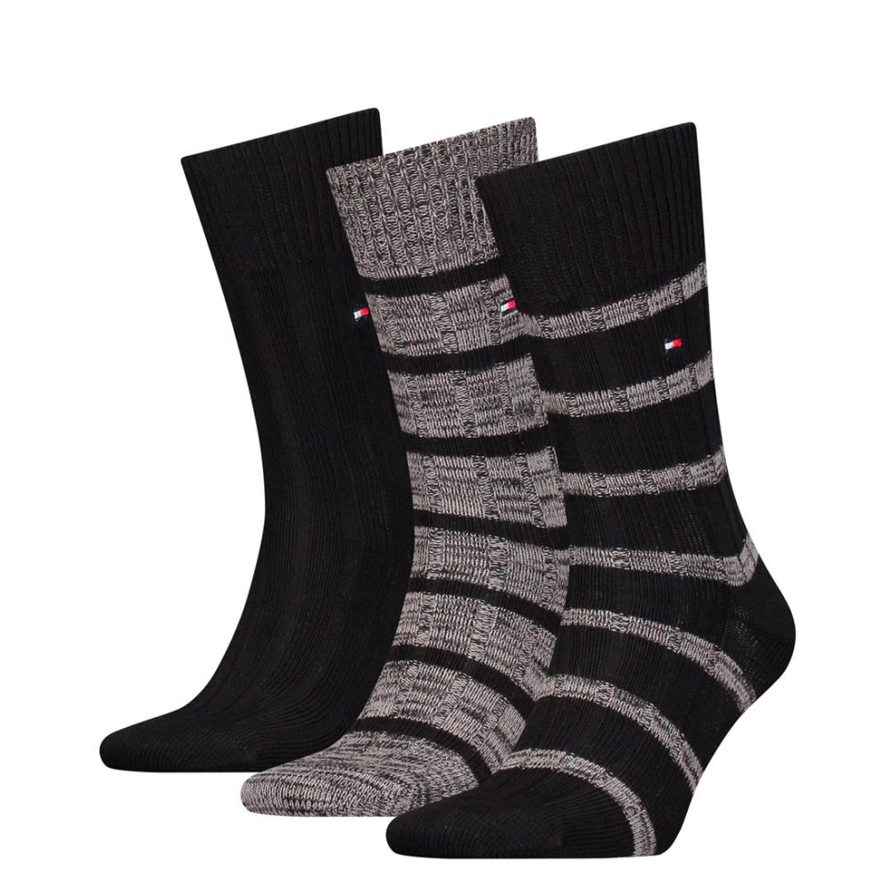 Tommy Hilfiger Sock Giftbox Slub Mouline Stripe Bootsock 3-Pack Black Combo