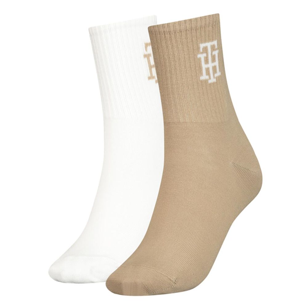 Tommy Hilfiger Women Short Sock 2-Pack Monogram Beige Combo