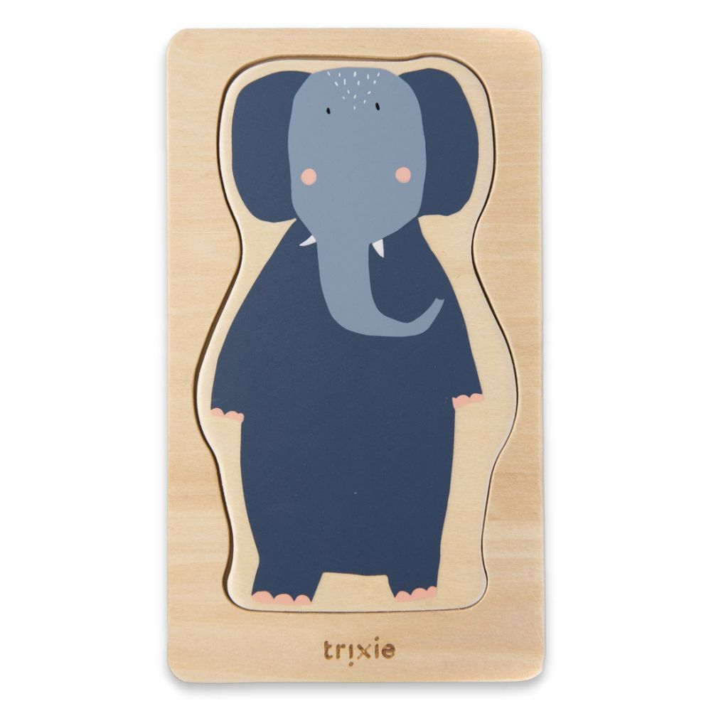 Wacht niet langer en geef je baby een geweldige puzzelervaring met de Wooden 4-layer animal puzzle van Trixie!