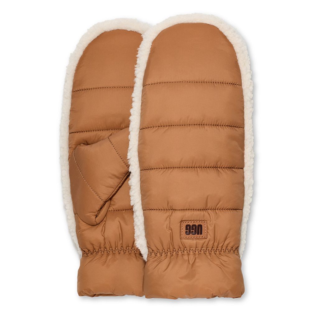 en zijn perfect voor dames die stijl en comfort willen combineren tijdens de koudere maanden. Gemaakt van 100% gerecycled nylon, zijn ze niet alleen een slimme keuze voor je garderobe, maar ook voor de planeet.De binnenkant van deze mittens is vervaardigd uit gerecycled polyester, wat zorgt voor een heerlijk zachte en warme ervaring. De Chestnut kleur voegt een vleugje luxe toe aan je winteroutfit, waardoor je er altijd chic uitziet, ongeacht het weer. Met de Uggfluff serie ben je verzekerd van een trendy en duurzame keuze die je handen in stijl beschermt.