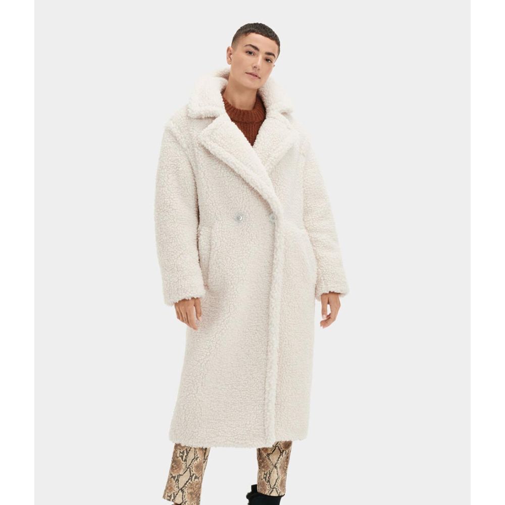 UGG W Gertrude Long Teddy Coat Winter White