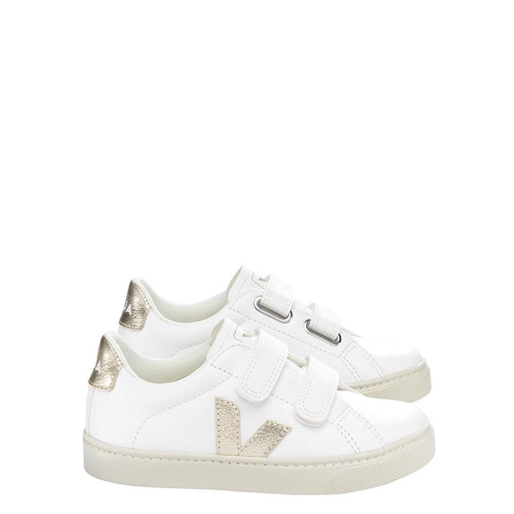 De Small Esplar Chromevrije Leren sneakers van Veja zijn perfect voor kinderen die op zoek zijn naar stijl en comfort. Deze sneakers zijn gemaakt van chroomvrij leer en natuurlijk rubber, waardoor ze niet alleen duurzaam zijn, maar ook vriendelijk voor het milieu. De binnenkant van de schoen is gemaakt van gerecycled polyester, terwijl de binnenzool is gemaakt van organisch katoen. De natuurlijke rubberen zool zorgt voor een goede grip en ondersteuning tijdens het lopen. Met de handige klittenbandsluiting kunnen kinderen deze sneakers gemakkelijk aan- en uittrekken.