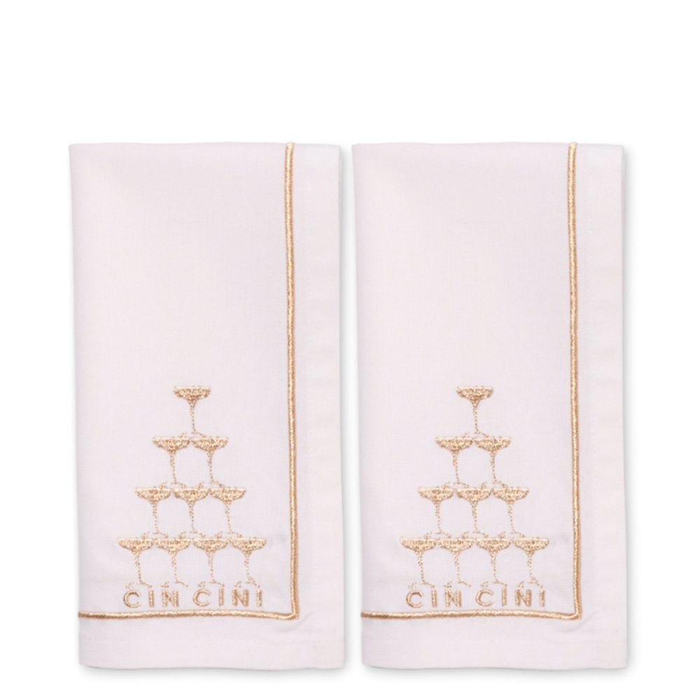Vondels Embroidered Napkins Champagne Tower 45cm Pack Of 2 White