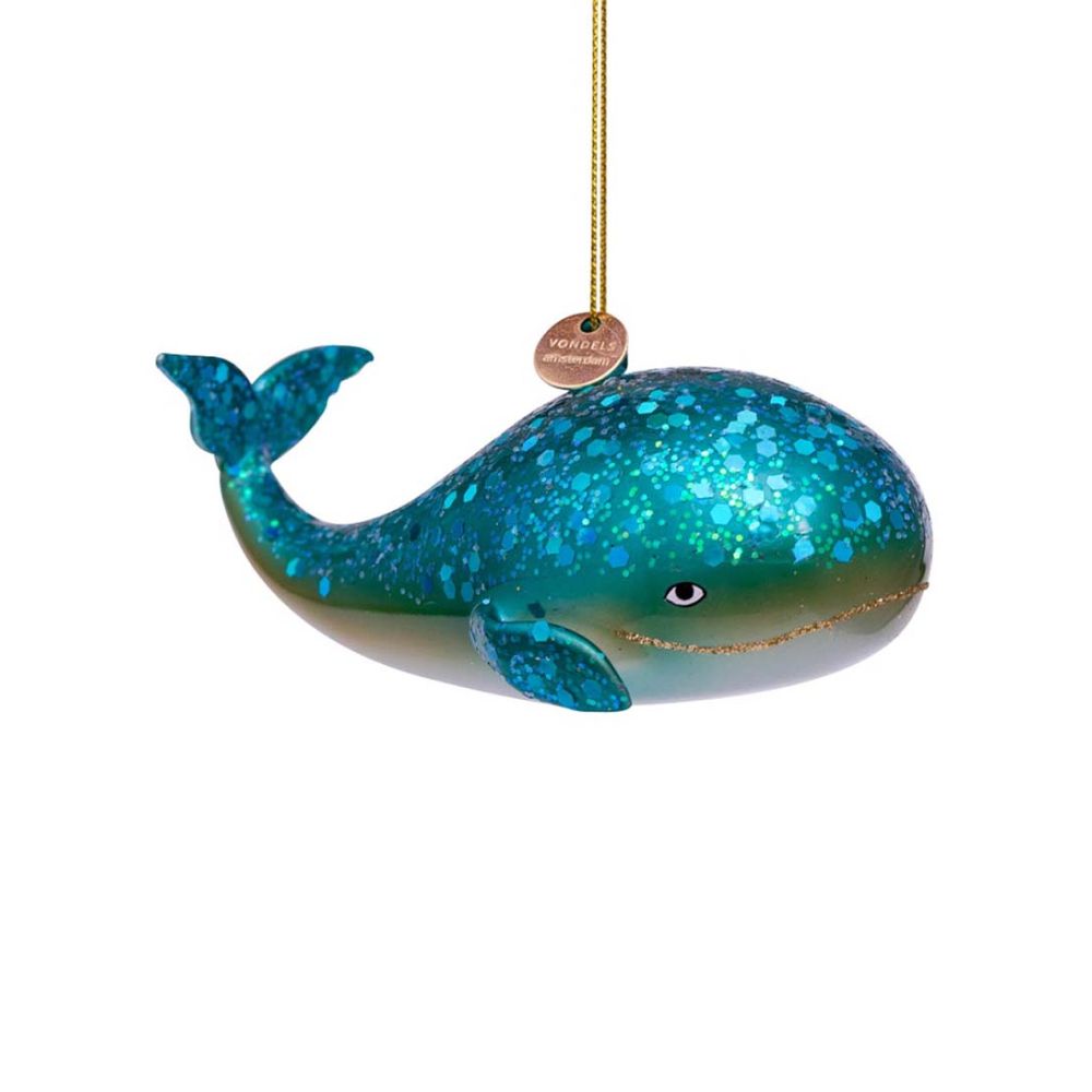 Voeg een vleugje magie toe aan je kerstviering met de Ornament Glass Blue Giant Whale 4.5cm van Vondels. Bestel nu en maak je kerstcollectie compleet met dit prachtige en betoverende ornament!